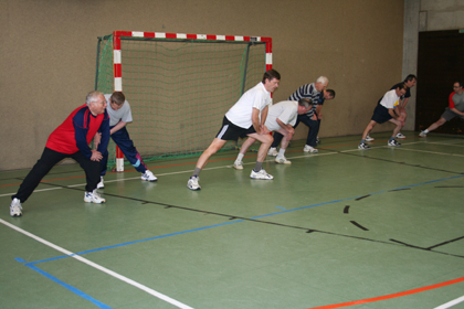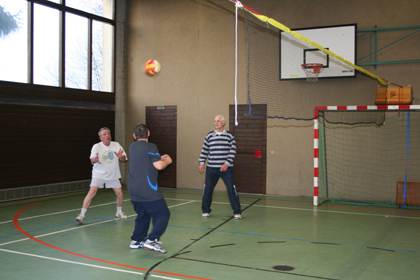 der älteren Teilnehmer wird besonders Rücksicht genommen. Beim Volleyballspiel
